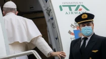 El Papa Francisco sube a un avión de ITA Airways. Crédito: Daniel Ibáñez/ACI Prensa