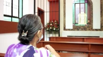 Fieles rezan el Rosario y llenan de rosas la capilla de EWTN en honor a María