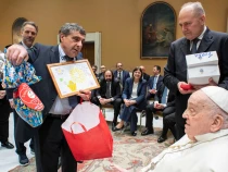 El Papa Francisco recibe un huevo de Pascua en la audiencia de esta mañana con personal del Gemelli