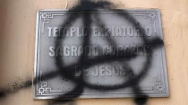 Pinta anarquista en Templo Expiatorio Sagrado Corazu00f3n de Jesu00fas. Cru00e9dito: Cortesu00eda Catolin.