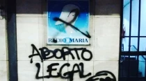 Desconocidos pintan sede de Radio María con consigna a favor del aborto